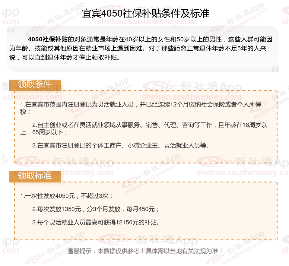 一、宜宾4050社保补贴标准及条件2023-2024年