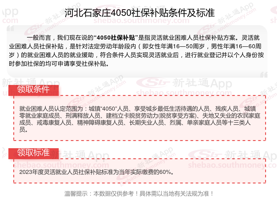 以上就是河北石家庄4050灵活就业社保补贴的相关内容,欢迎关注新社通/下载新社通APP了解更多五险一金专业资讯。