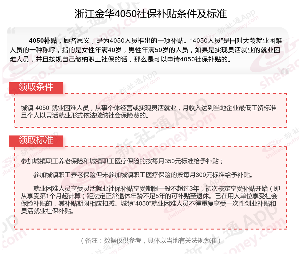 二、浙江金华4050社保补贴标准及条件2023-2024年
