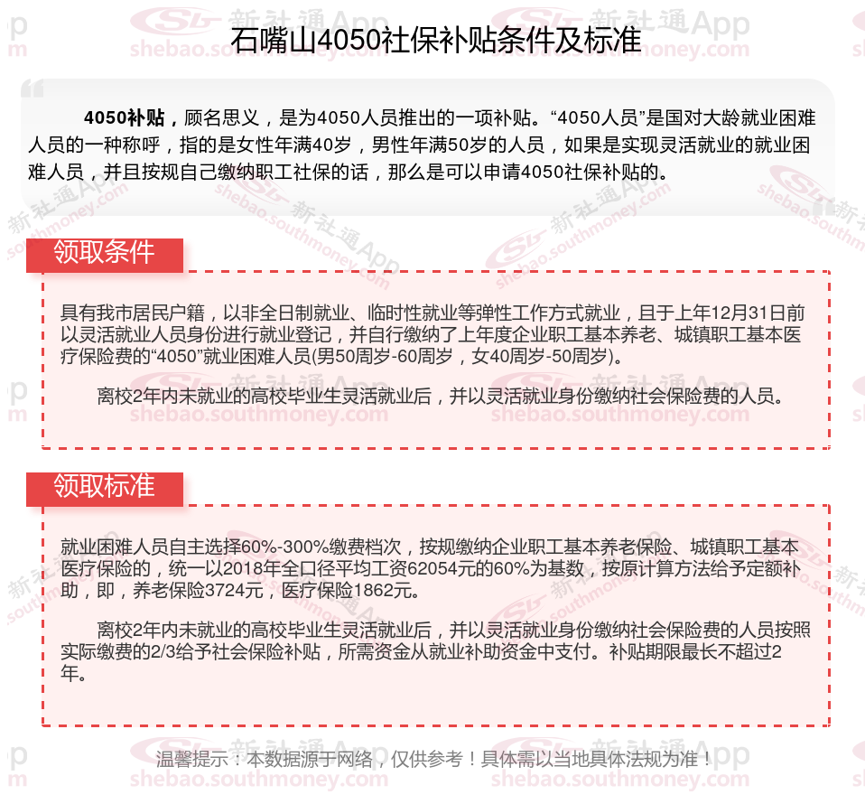 2024石嘴山灵活就业4050社保补贴是一项面向特定年龄段的就业困难人群的社会保险补贴。