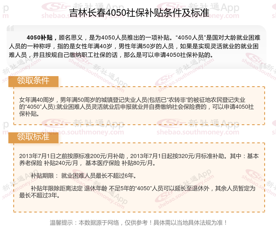 一、吉林长春4050社保补贴标准及条件2023-2024年