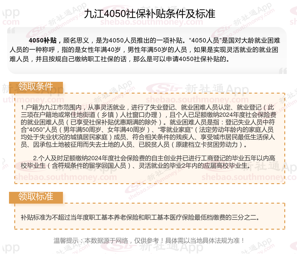 二、九江4050社保补贴标准及条件2023-2024年,最新如下