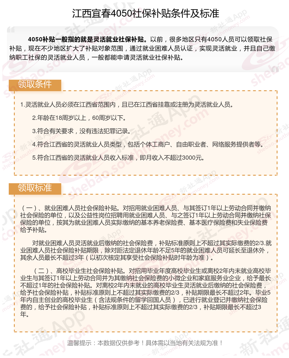 以上就是江西宜春4050灵活就业社保补贴的相关内容,欢迎关注新社通/下载新社通APP了解更多五险一金专业资讯。