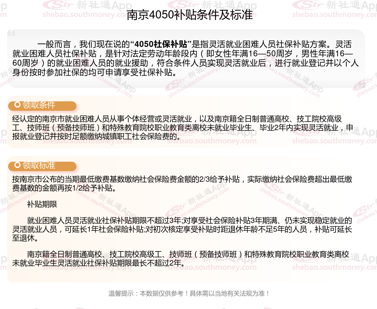 2024南京灵活就业4050社保补贴是一项面向特定年龄段的就业困难人群的社会保险补贴。