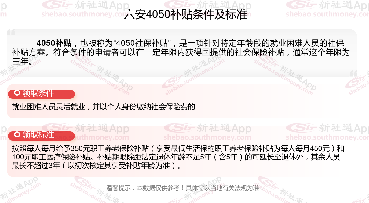 二、六安4050社保补贴标准及条件2023-2024年,最新如下