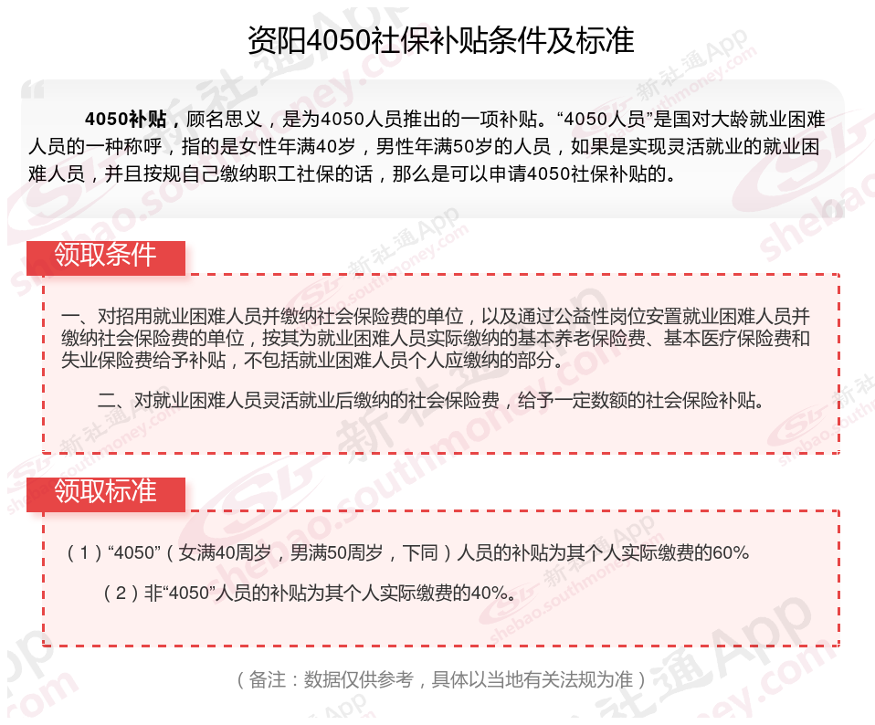 2024资阳灵活就业4050社保补贴是一项面向特定年龄段的就业困难人群的社会保险补贴。