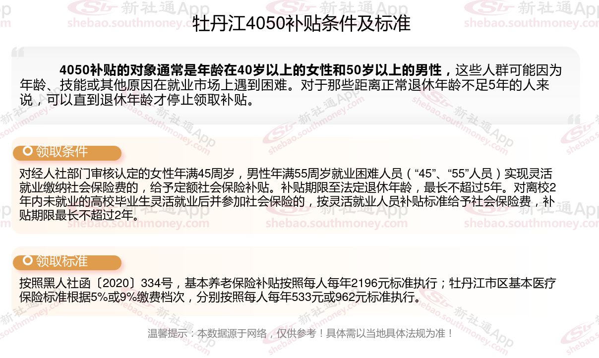 一、牡丹江4050社保补贴标准及条件2023-2024年