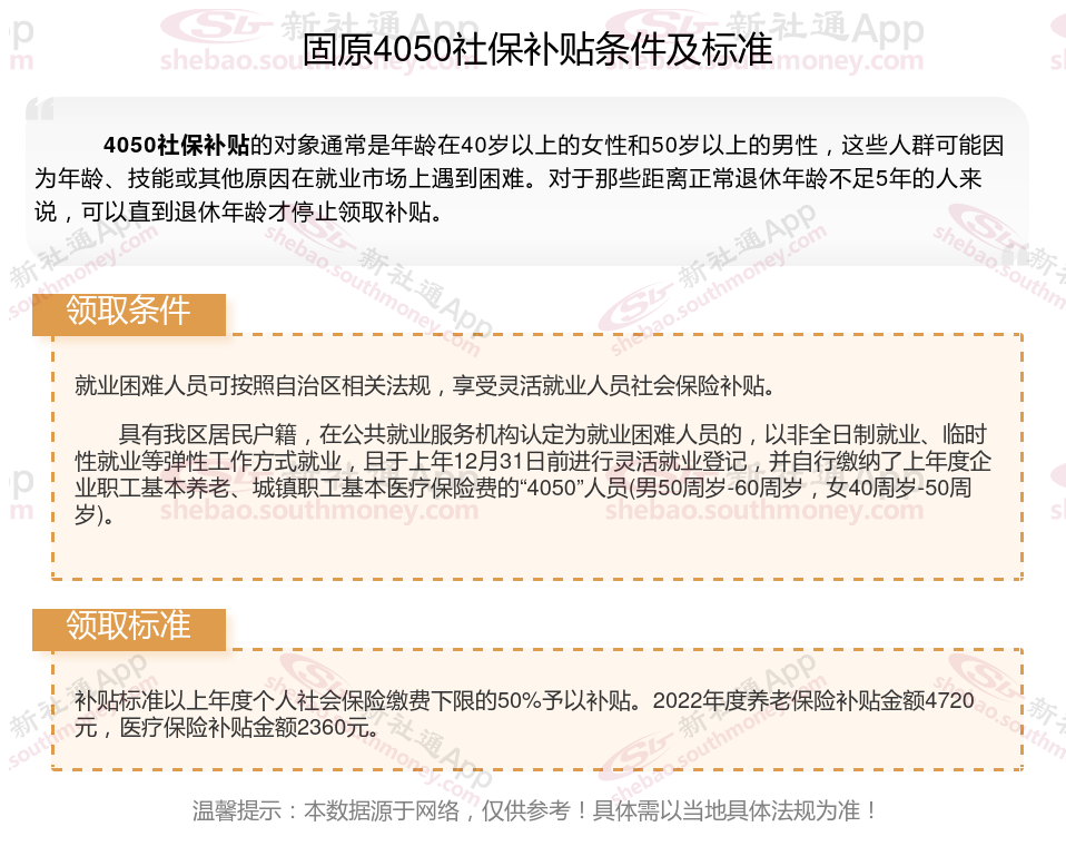 2024固原灵活就业4050社保补贴是一项面向特定年龄段的就业困难人群的社会保险补贴。