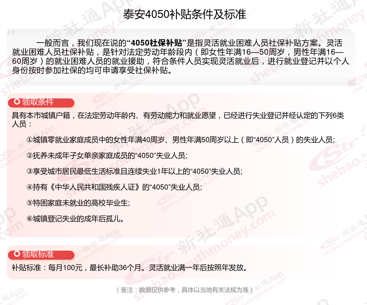 2024泰安灵活就业4050社保补贴是一项面向特定年龄段的就业困难人群的社会保险补贴。
