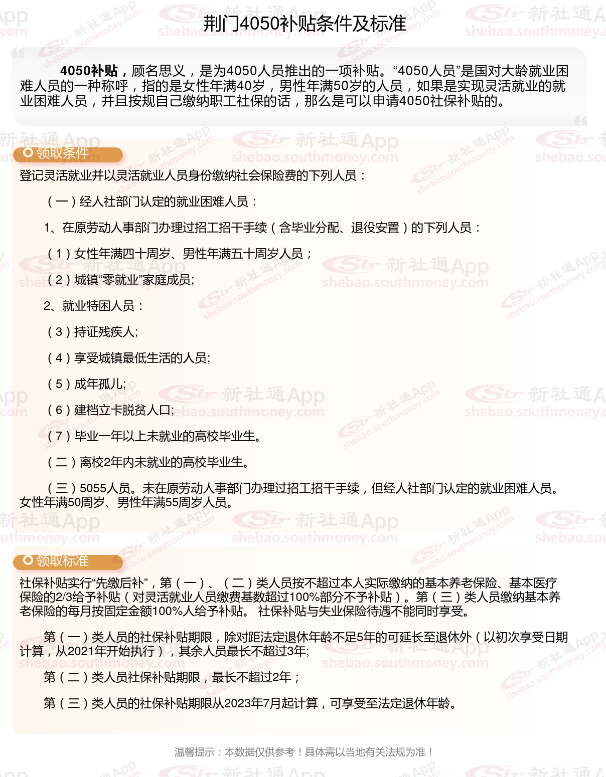 以上就是荆门4050灵活就业社保补贴的相关内容,欢迎关注新社通/下载新社通APP了解更多五险一金专业资讯。