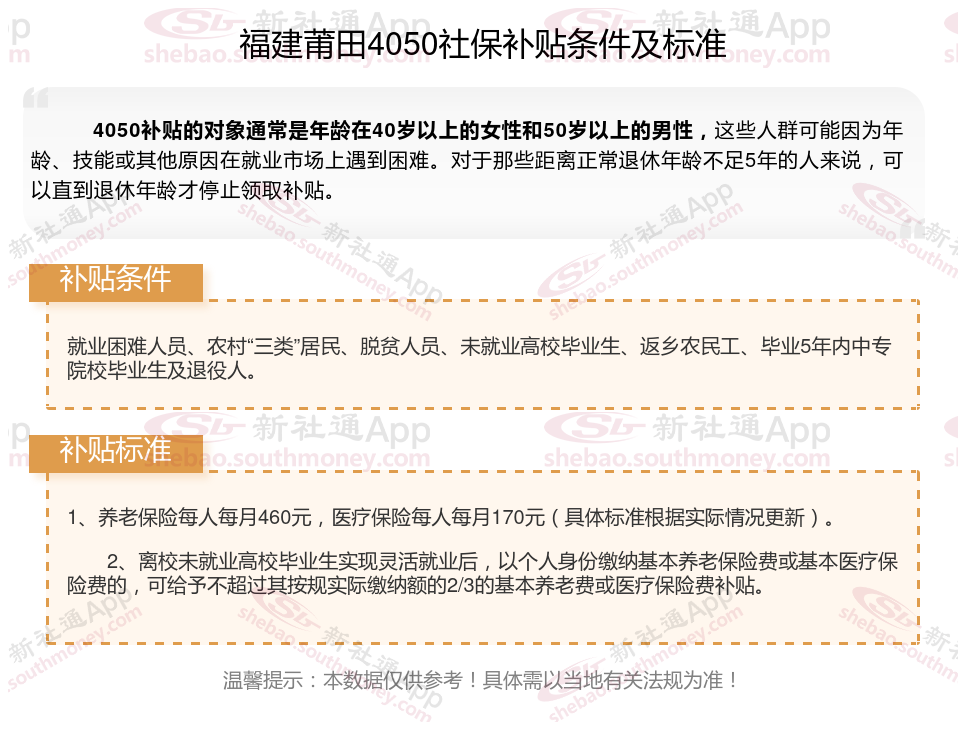 二、福建莆田4050社保补贴标准及条件2023-2024年