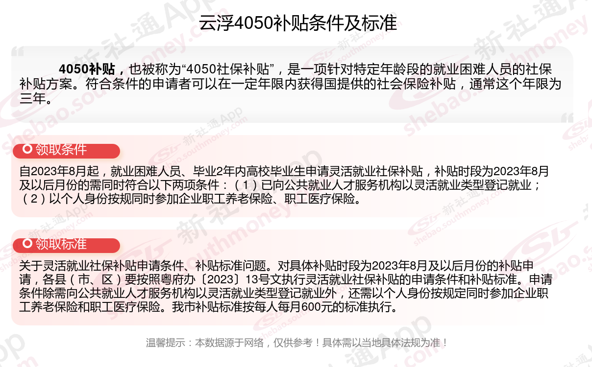以上就是云浮4050灵活就业社保补贴的相关内容,欢迎关注新社通/下载新社通APP了解更多五险一金专业资讯。