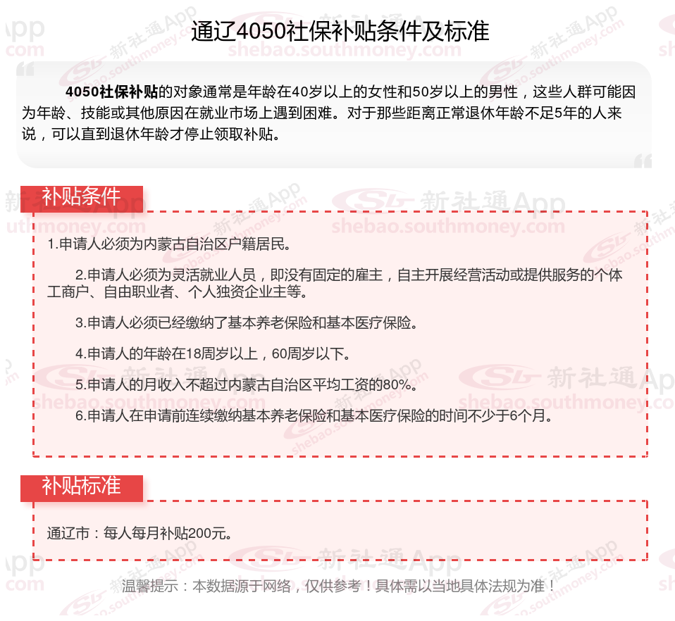 一、2023-2024年通辽4050灵活就业社保补贴标准及条件