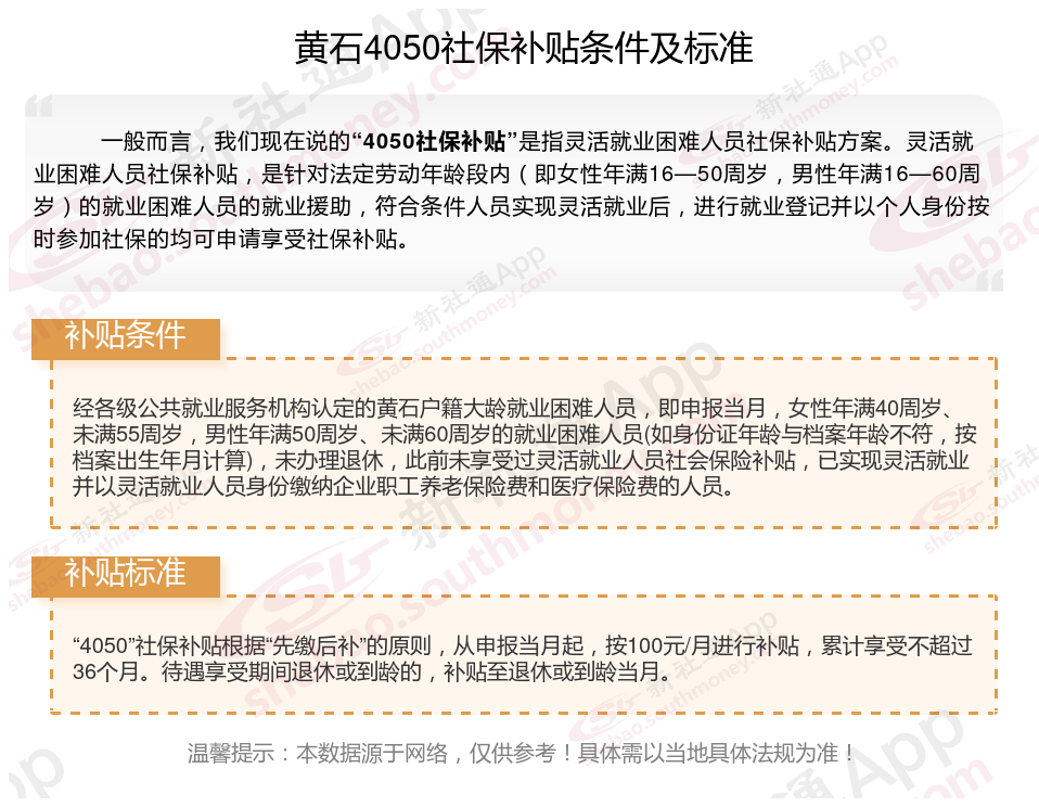 一、黄石4050社保补贴标准及条件2023-2024年