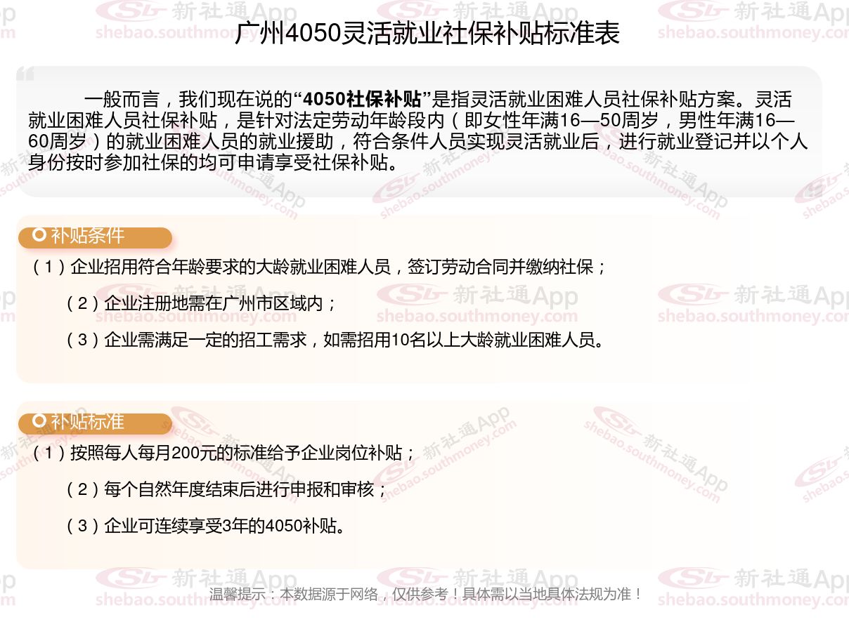 以上就是广州4050灵活就业社保补贴的相关内容,欢迎关注新社通/下载新社通APP了解更多五险一金专业资讯。