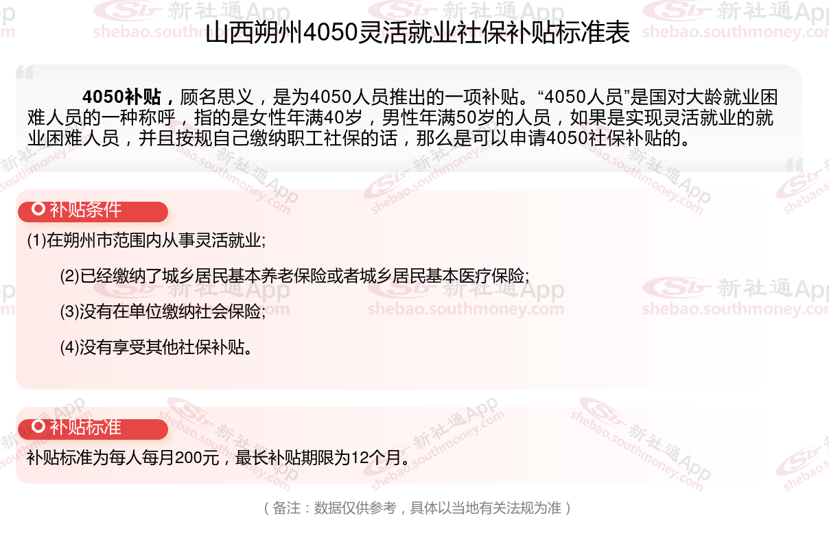 以上就是山西朔州4050灵活就业社保补贴的相关内容,欢迎关注新社通/下载新社通APP了解更多五险一金专业资讯。