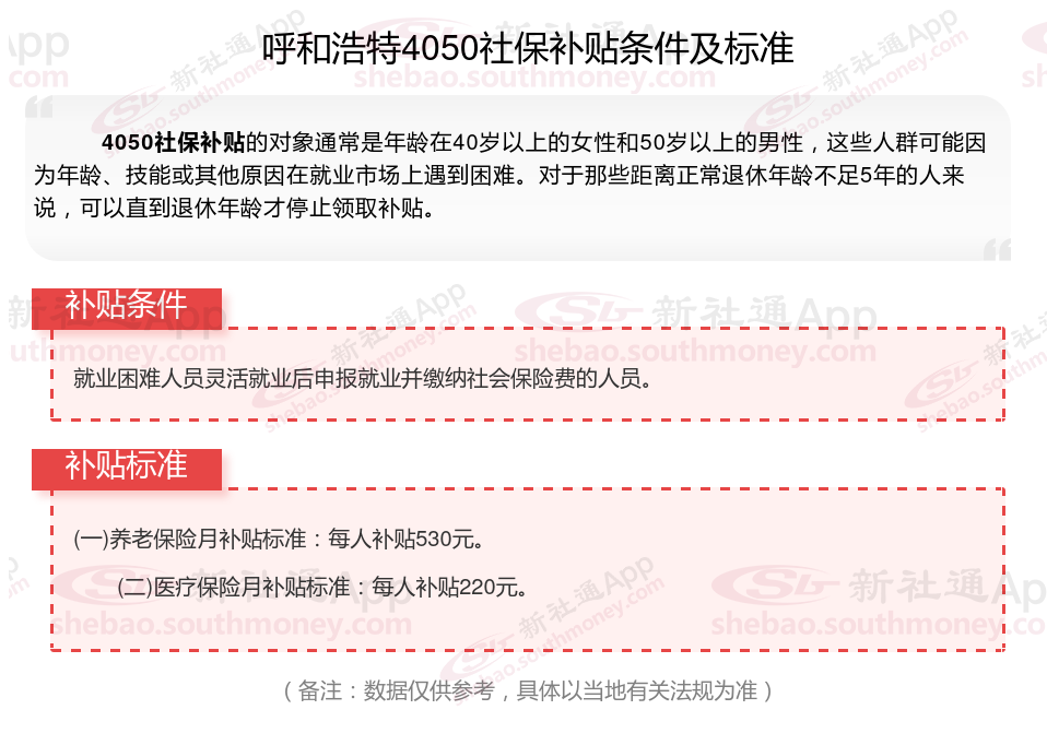一、2023-2024年呼和浩特灵活就业4050社保补贴标准和条件是什么