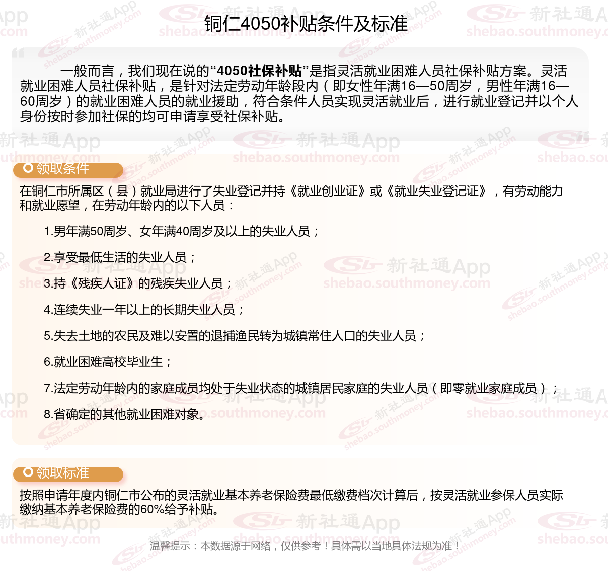 一、铜仁4050社保补贴标准及条件2023-2024年