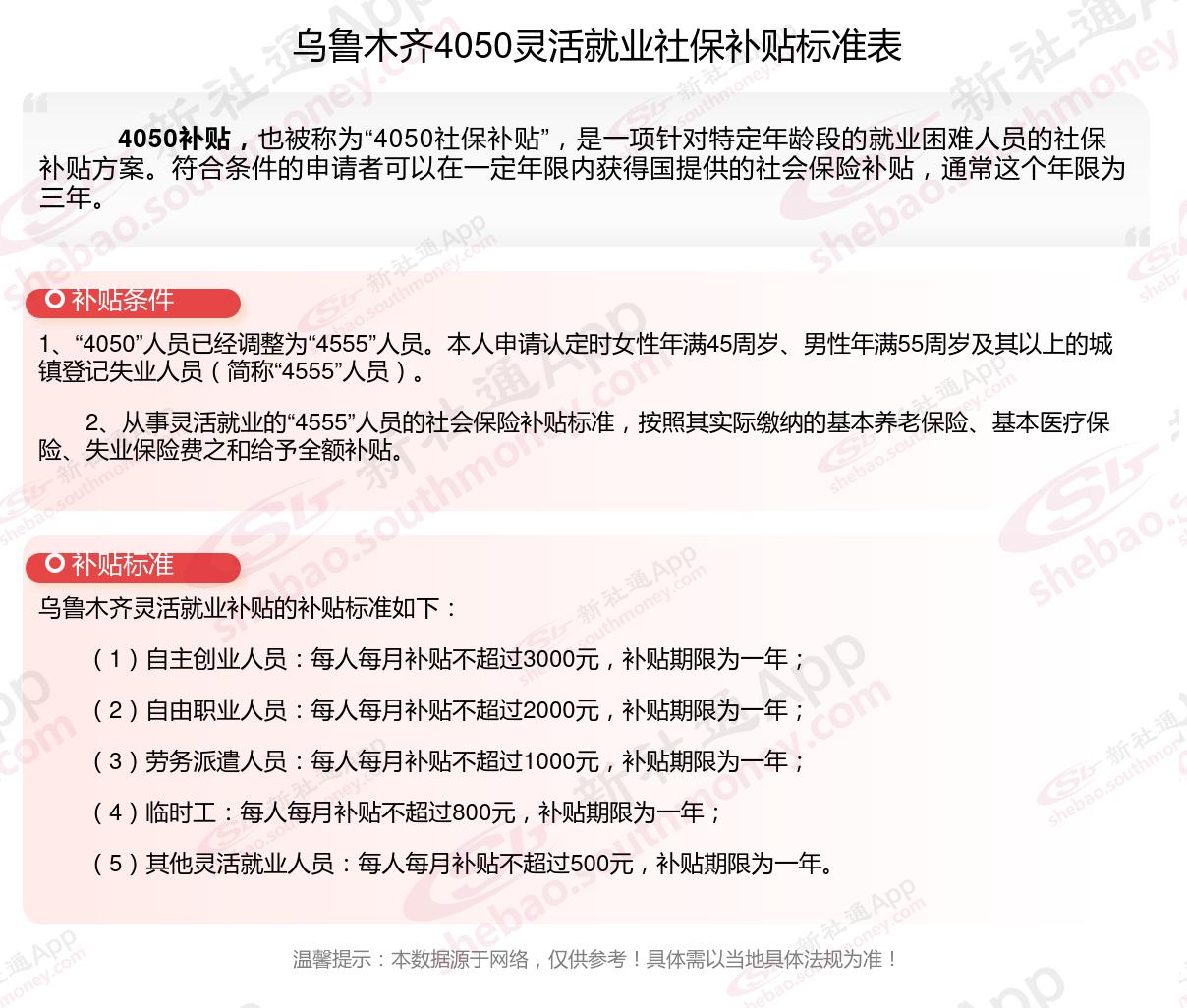 2024乌鲁木齐灵活就业4050社保补贴是一项面向特定年龄段的就业困难人群的社会保险补贴。