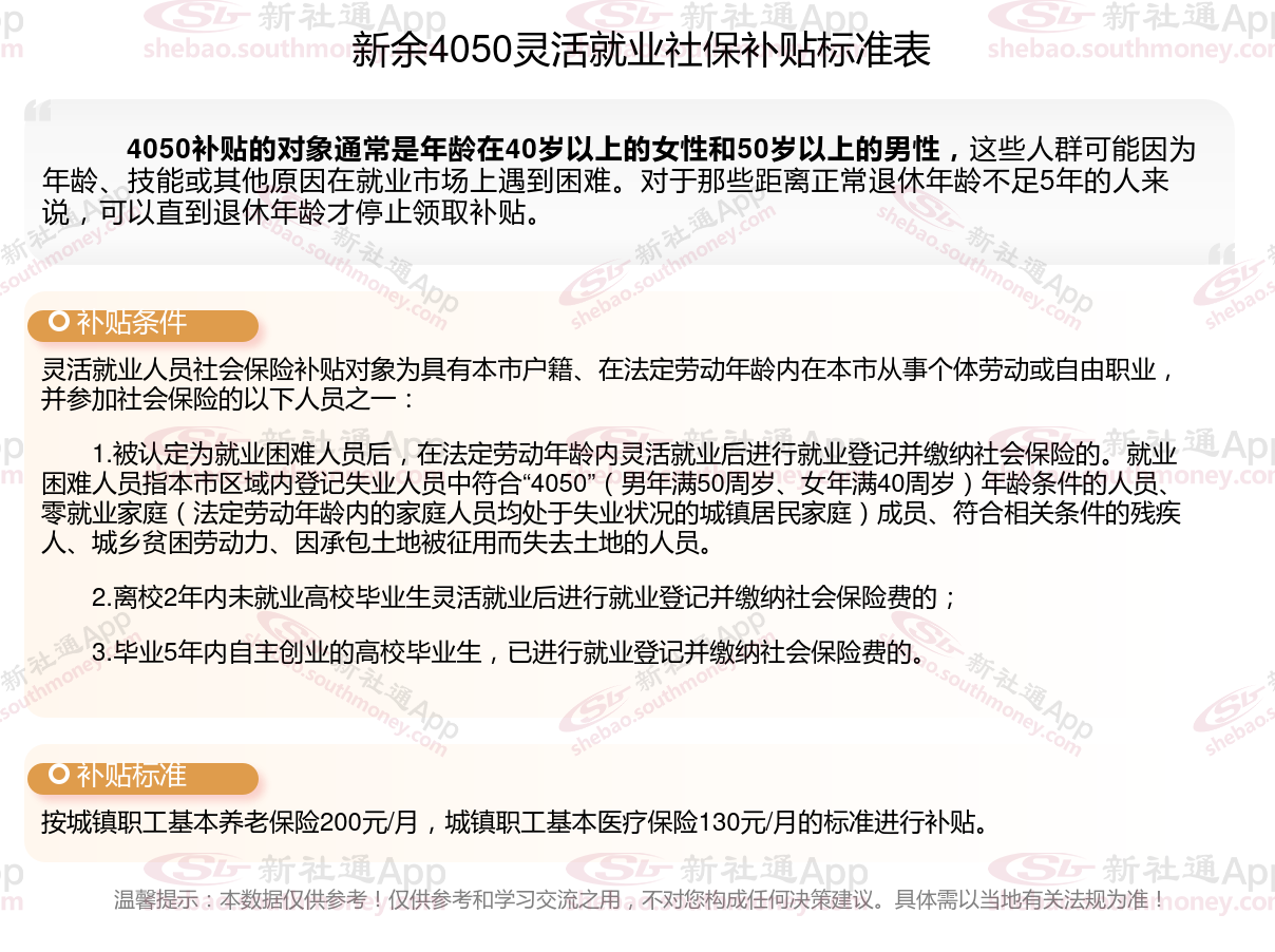 二、新余4050社保补贴标准及条件2023-2024年,最新如下