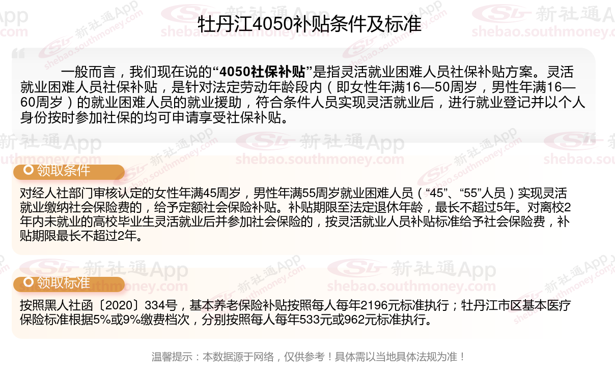 二、牡丹江4050社保补贴标准及条件2023-2024年
