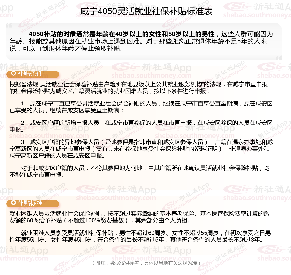 以上就是咸宁4050灵活就业社保补贴的相关内容,欢迎关注新社通/下载新社通APP了解更多五险一金专业资讯。