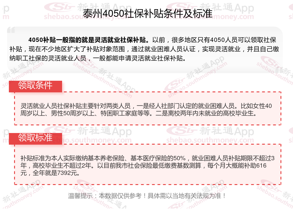 一、泰州4050社保补贴标准及条件2023-2024年