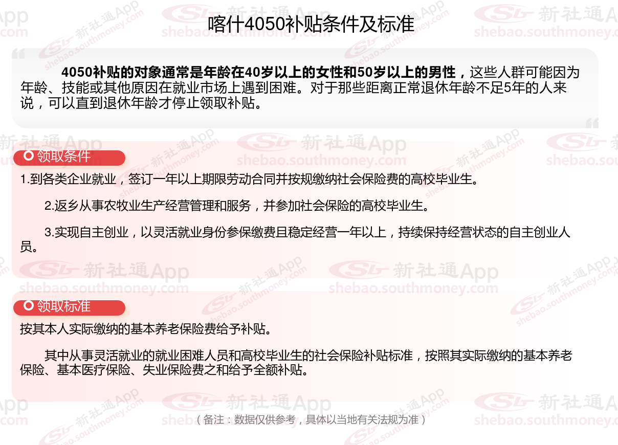 以上就是喀什4050灵活就业困难人员社保补贴的相关内容,欢迎关注新社通/下载新社通APP了解更多五险一金专业资讯。