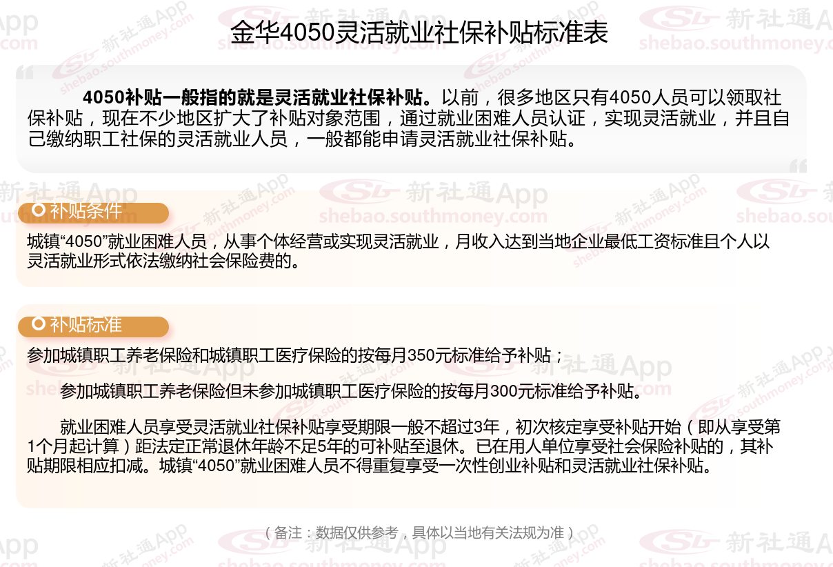 2024金华灵活就业4050社保补贴是一项面向特定年龄段的就业困难人群的社会保险补贴。