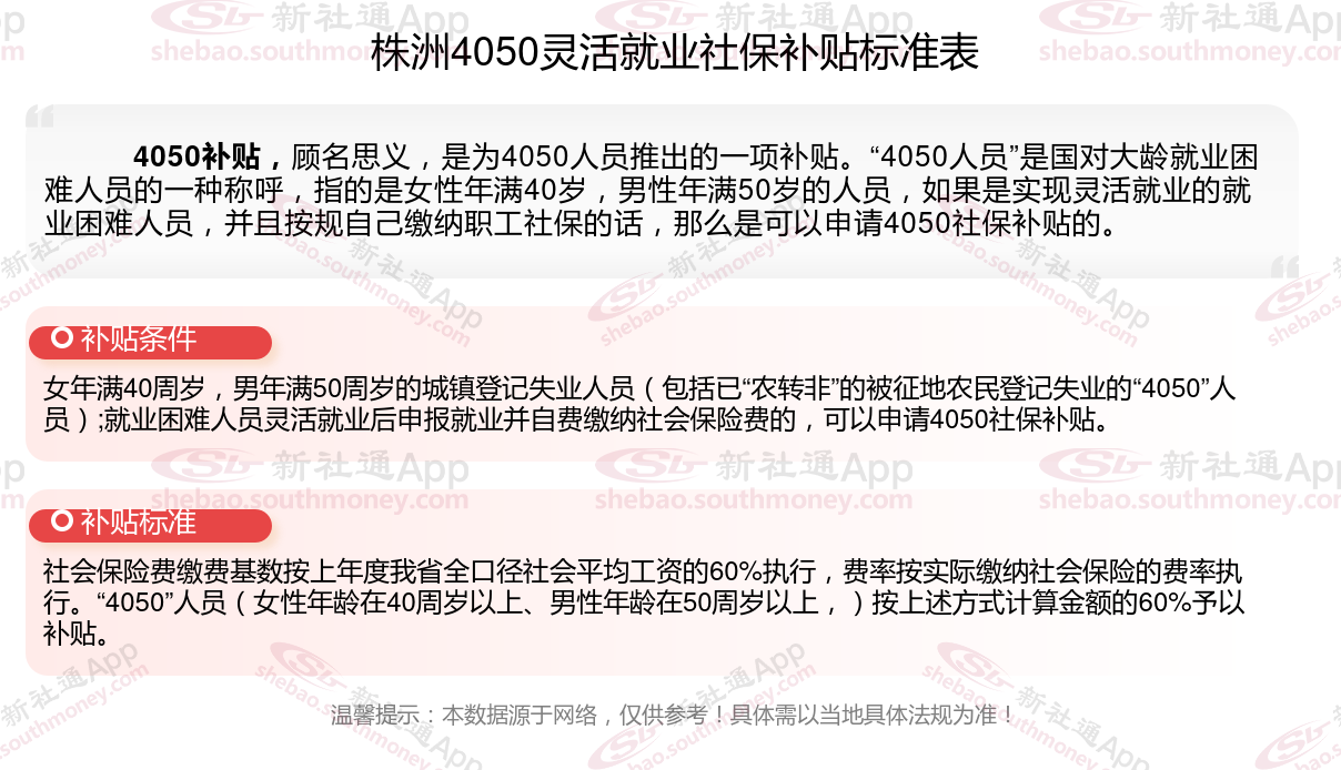 以上就是株洲4050灵活就业困难人员社保补贴的相关内容,欢迎关注新社通/下载新社通APP了解更多五险一金专业资讯。