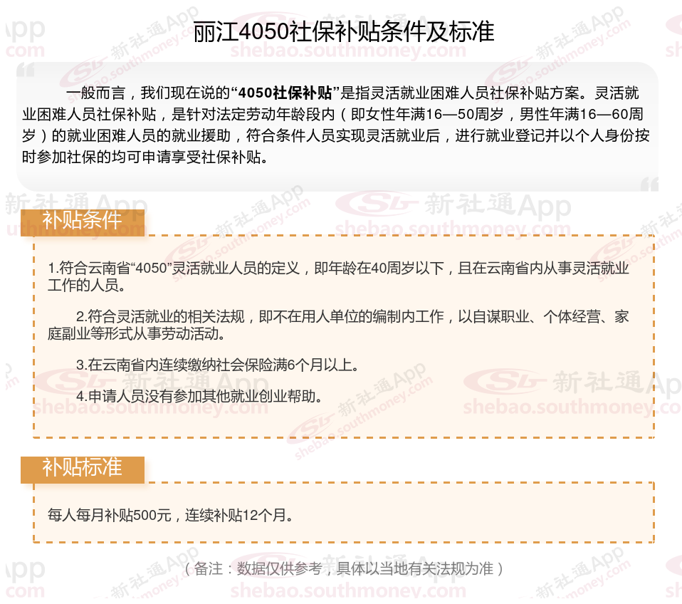 一、2023-2024年丽江4050社保补贴标准,最新领取条件来了
