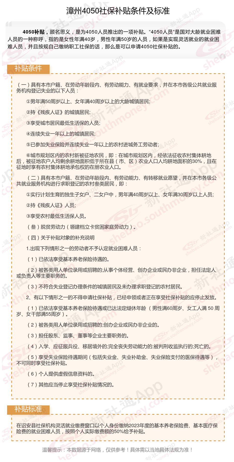 2024漳州灵活就业4050社保补贴是一项面向特定年龄段的就业困难人群的社会保险补贴。
