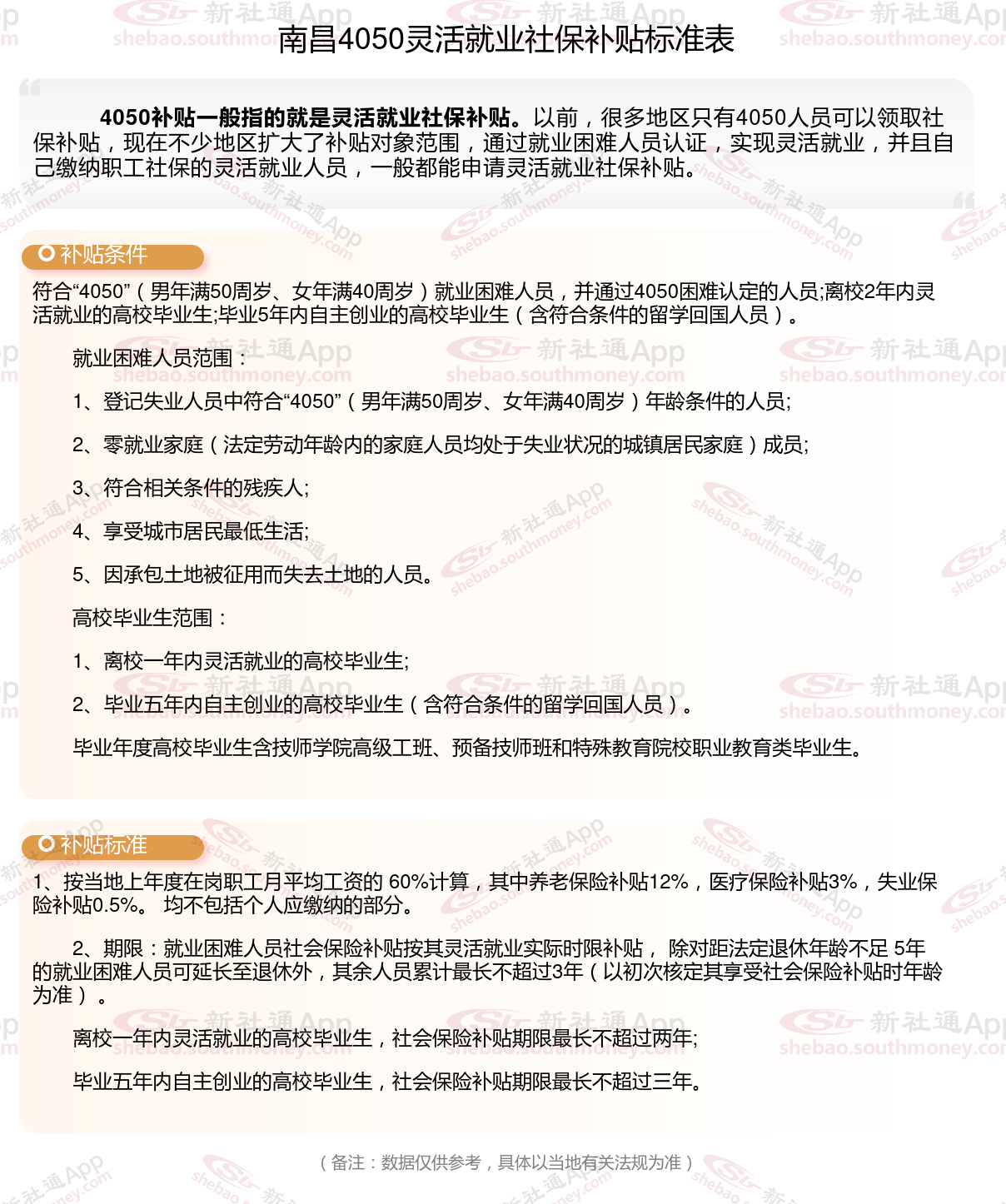 以上就是南昌4050灵活就业社保补贴的相关内容,欢迎关注新社通/下载新社通APP了解更多五险一金专业资讯。