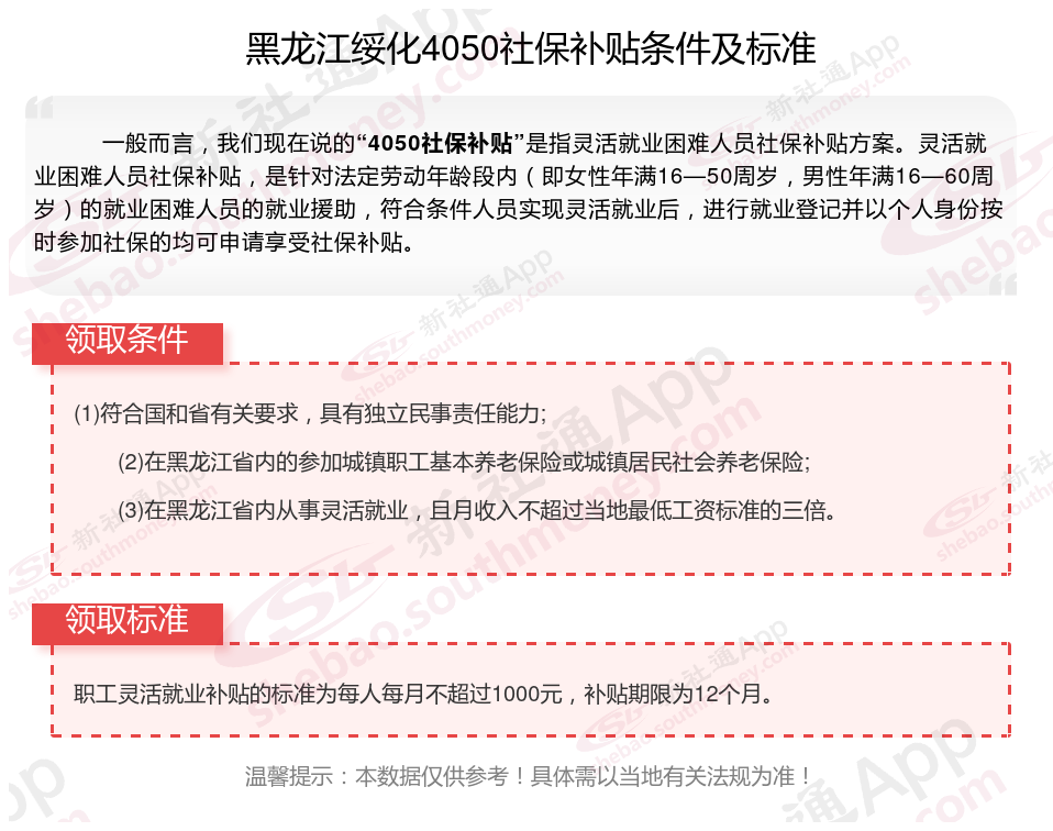 以上就是黑龙江绥化4050灵活就业社保补贴的相关内容,欢迎关注新社通/下载新社通APP了解更多五险一金专业资讯。
