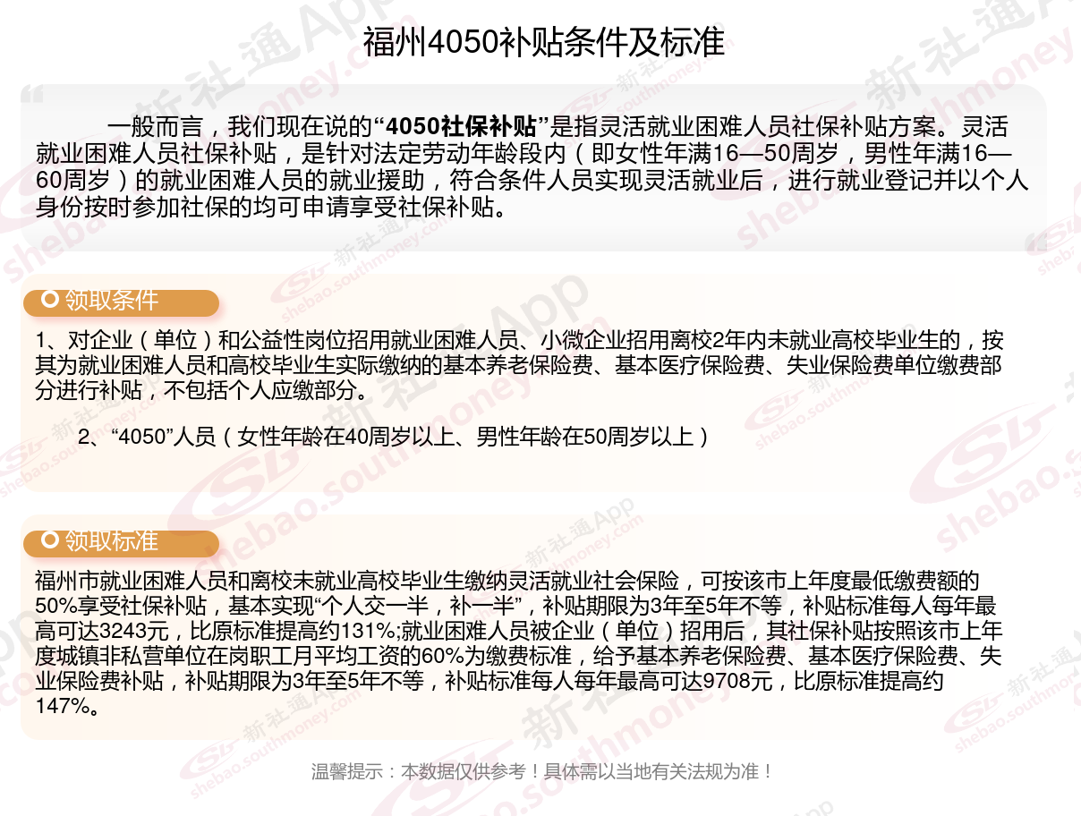 2024福州灵活就业4050社保补贴是一项面向特定年龄段的就业困难人群的社会保险补贴。