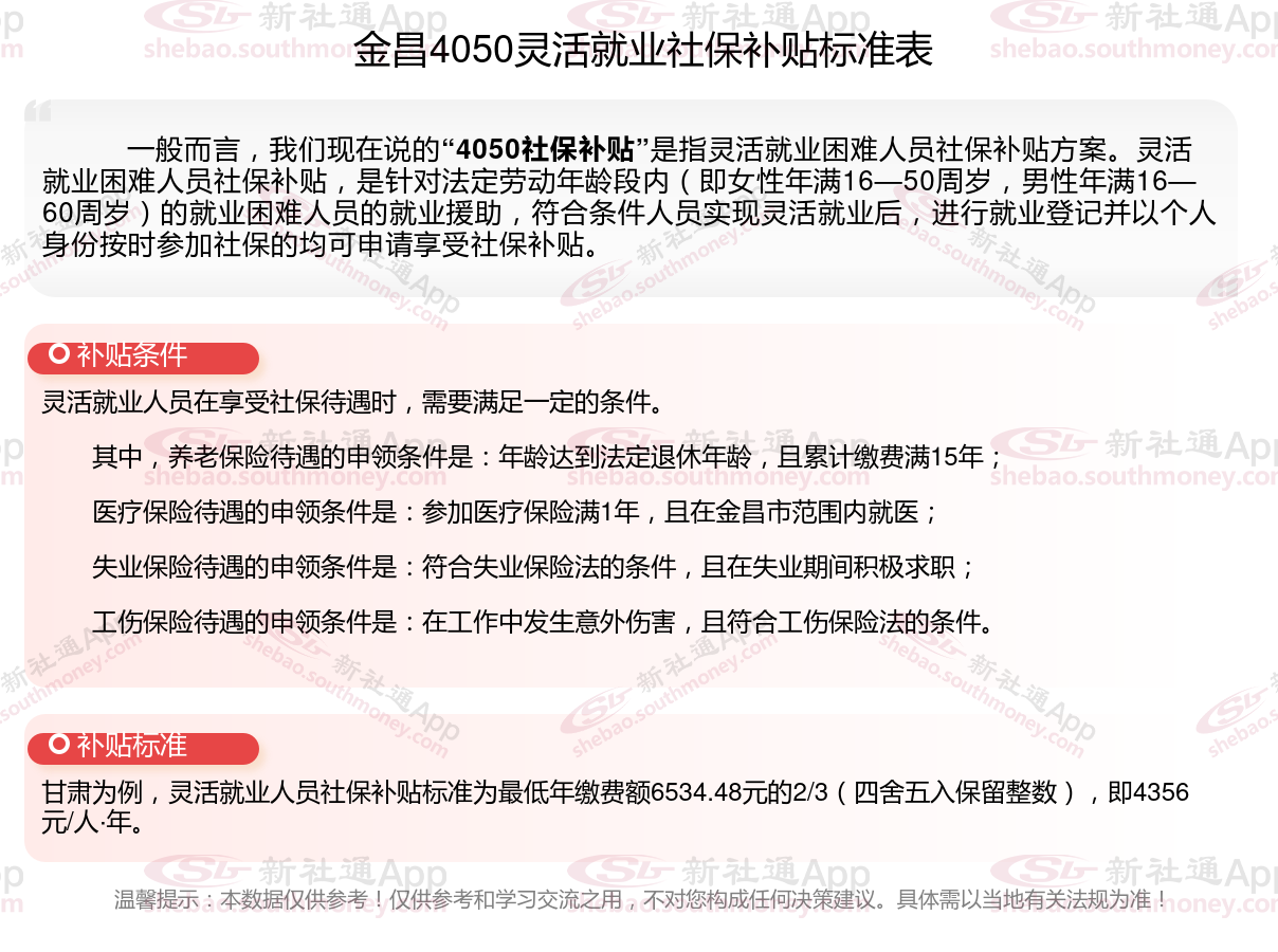 一、2023-2024年金昌4050社保补贴标准,最新领取条件来了