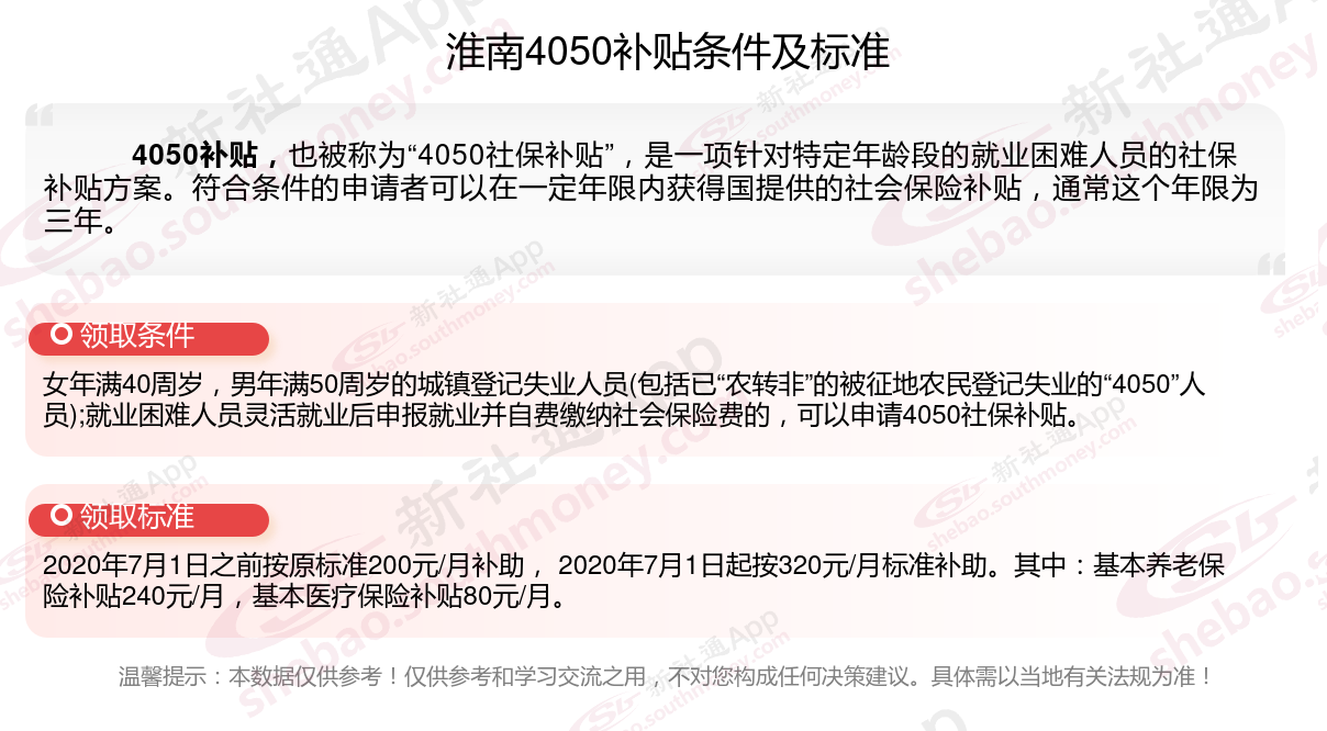 一、2023-2024年淮南4050社保补贴标准及条件,最新如下