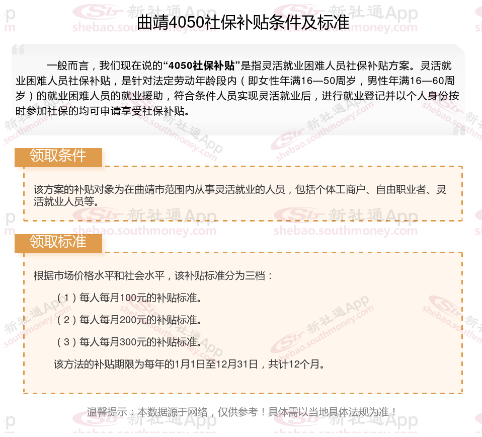 一、曲靖4050社保补贴标准及条件2023-2024年