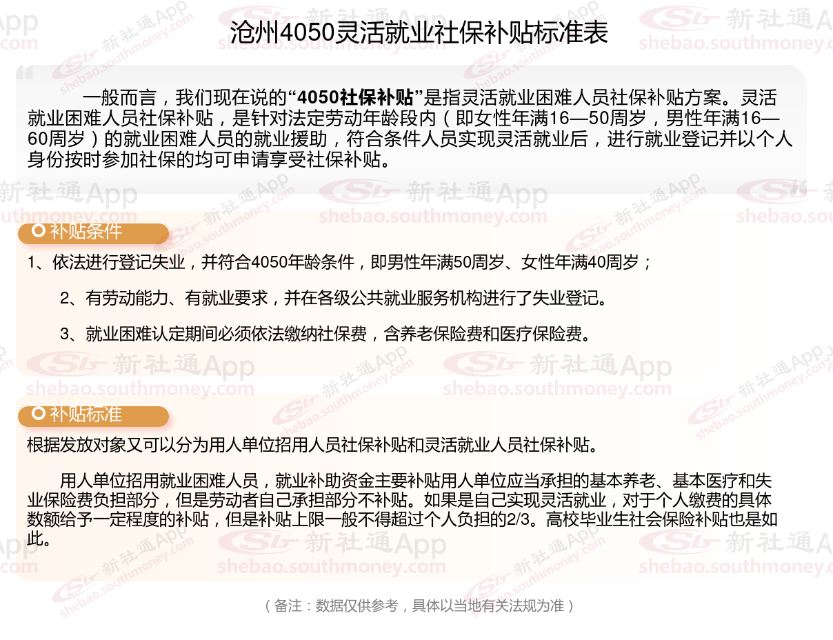 二、沧州4050社保补贴标准及条件2023-2024年,最新如下