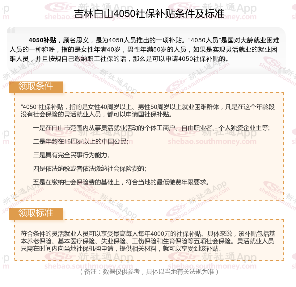 一、吉林白山4050社保补贴标准及条件2023-2024年