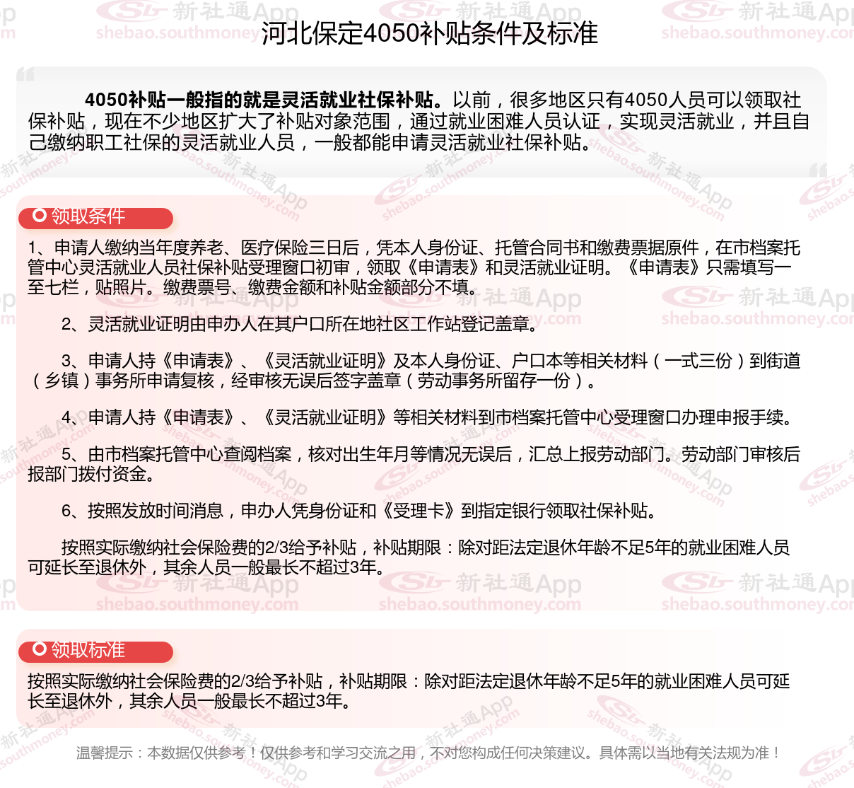 二、2023-2024年河北保定4050社保补贴标准,最新领取条件来了