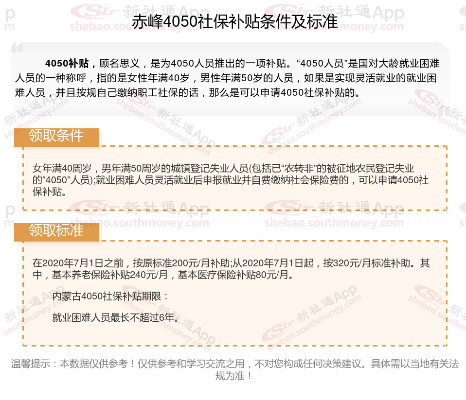 一、赤峰4050社保补贴标准及条件2023-2024年