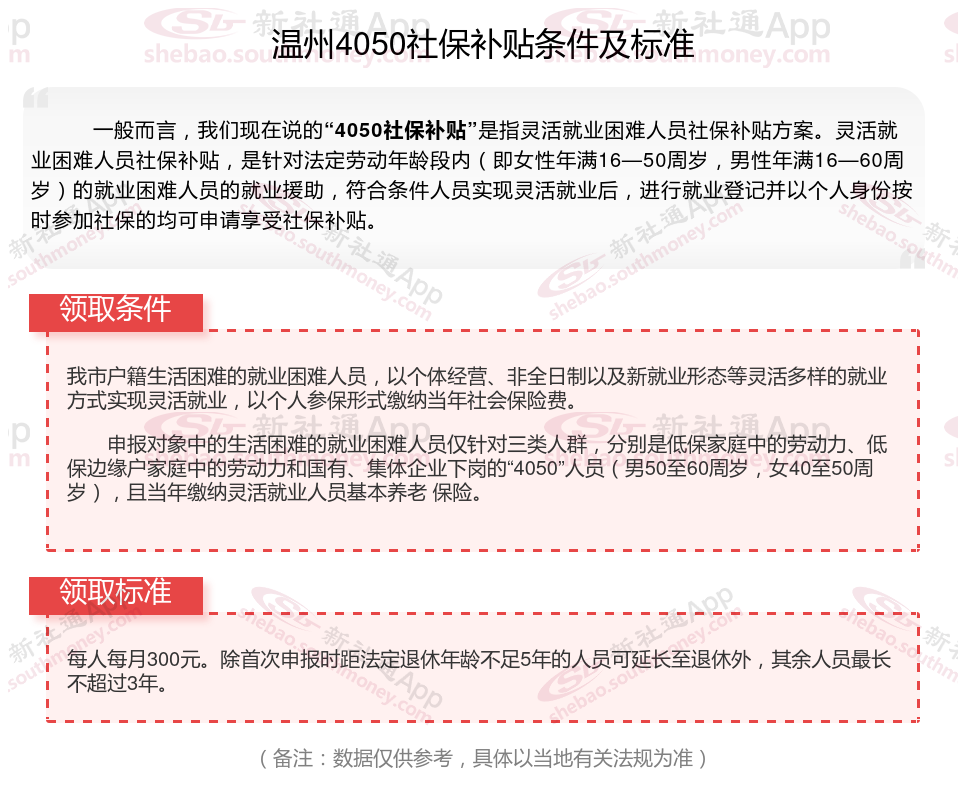 2024温州灵活就业4050社保补贴是一项面向特定年龄段的就业困难人群的社会保险补贴。