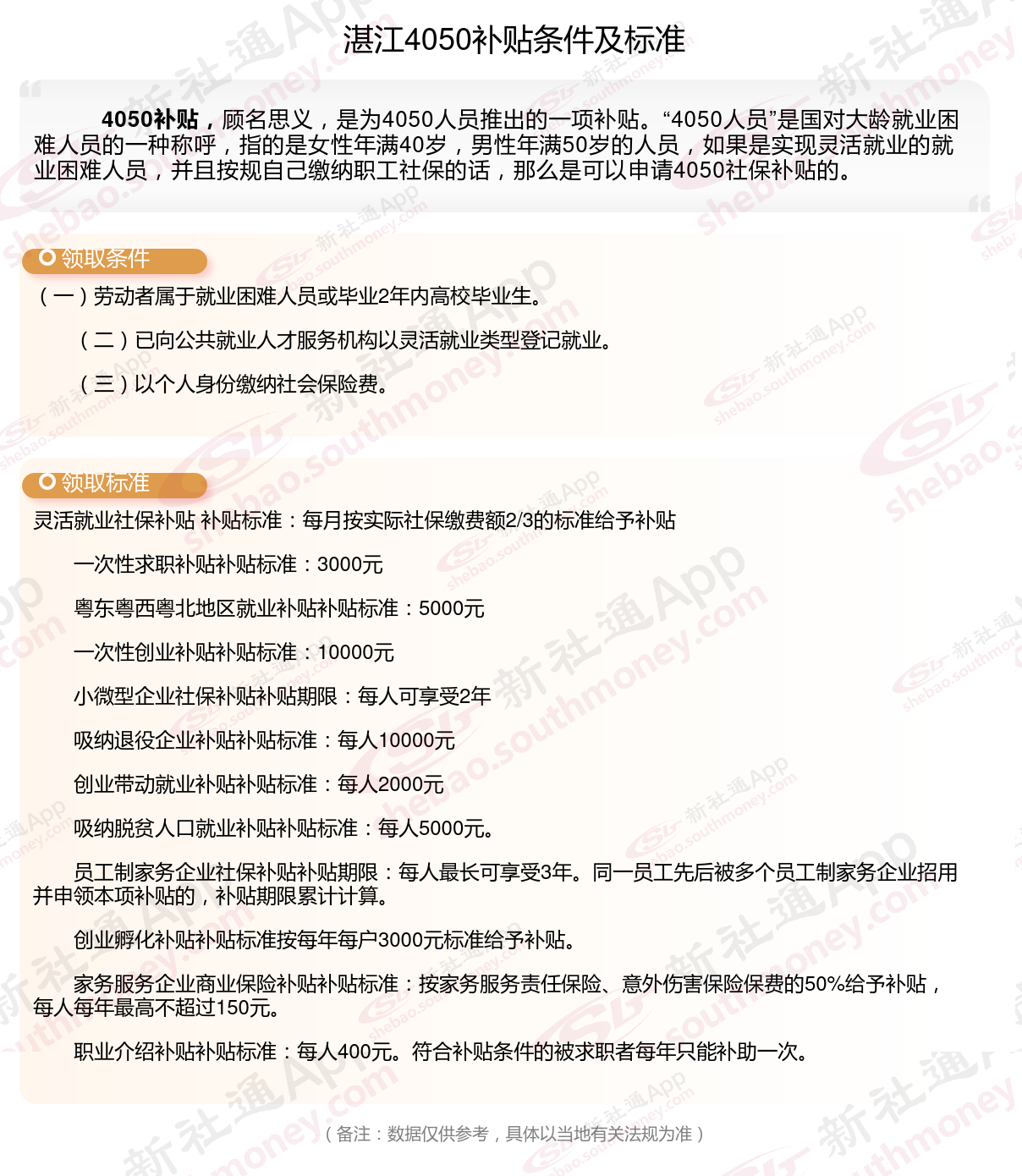 一、2023-2024年湛江4050灵活就业社保补贴标准及条件