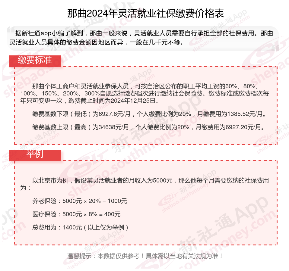 三、那曲2024年灵活就业社保缴费基数及比例最新消息