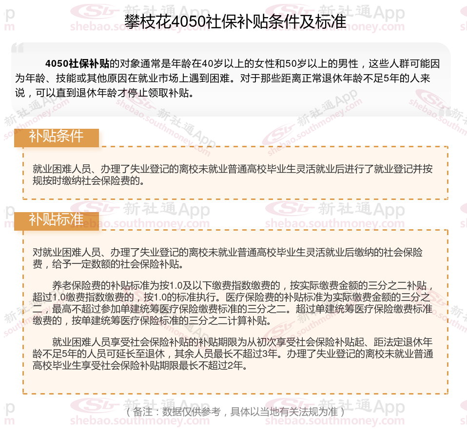 一、攀枝花4050社保补贴标准及条件2023-2024年