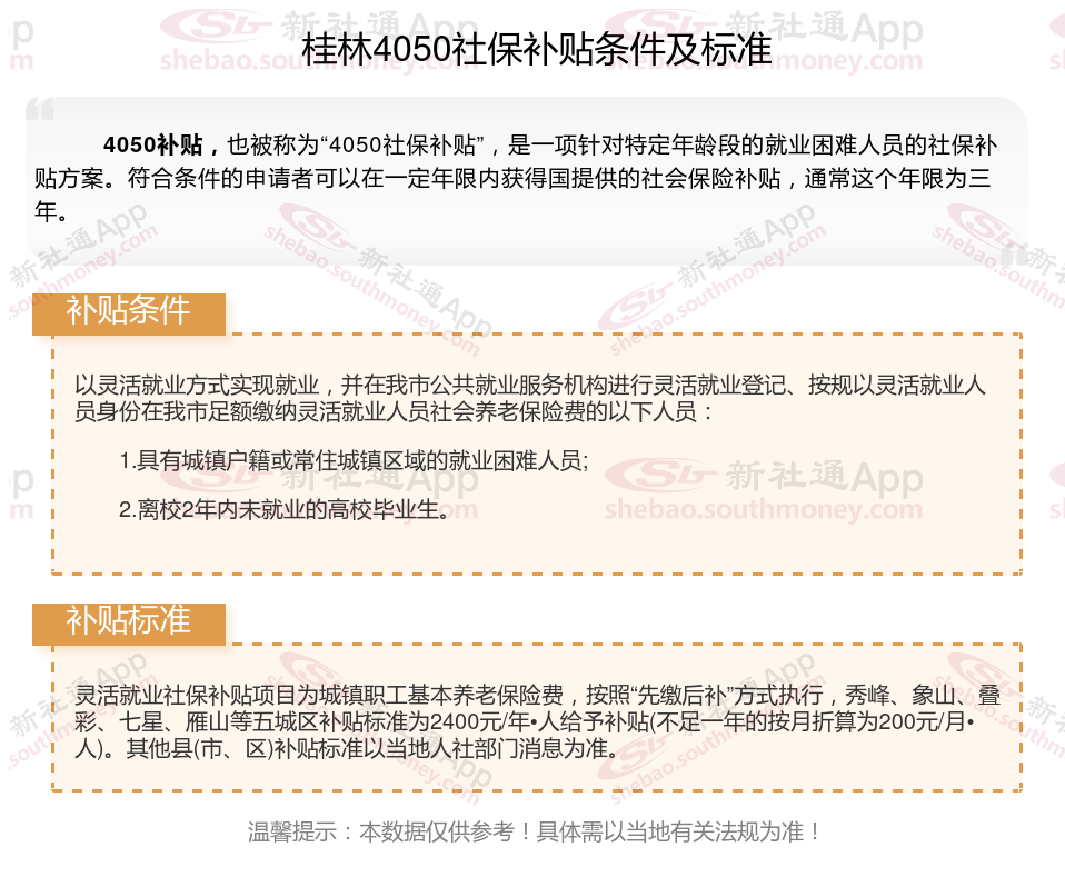 2024桂林灵活就业4050社保补贴是一项面向特定年龄段的就业困难人群的社会保险补贴。