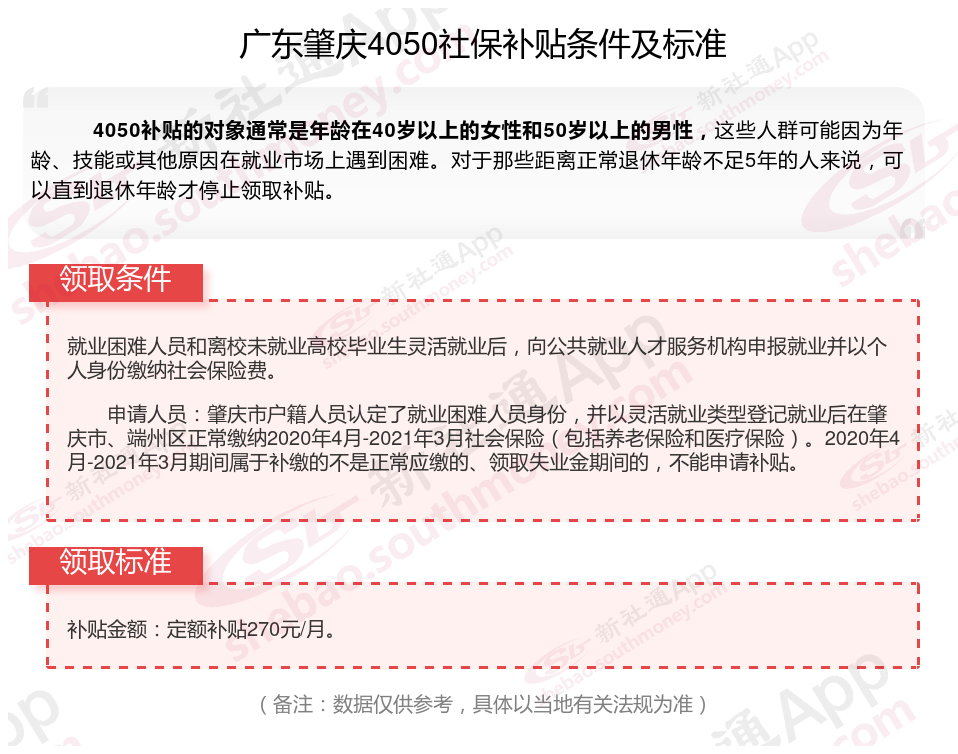 2024广东肇庆4050补贴主要针对的是年龄在40岁以上的女性和50岁以上的男性,这些人群通常因为年龄较大而面临就业困难。