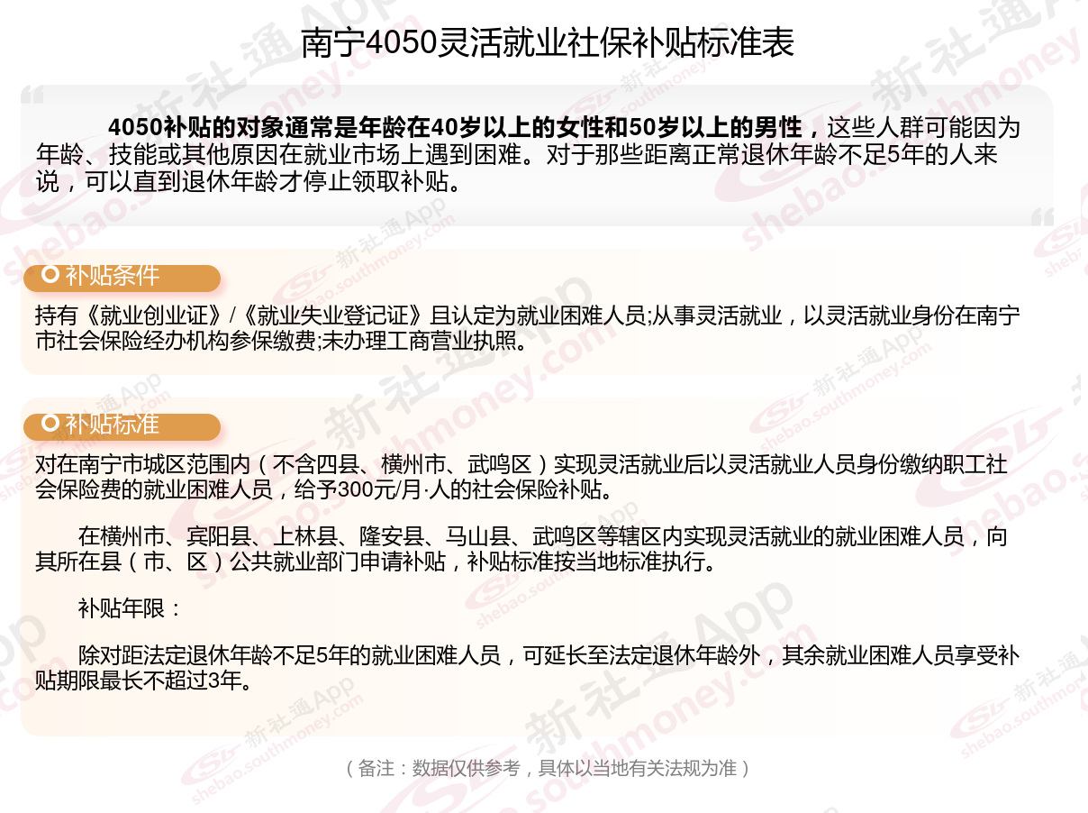 以上就是南宁4050灵活就业社保补贴的相关内容,欢迎关注新社通/下载新社通APP了解更多五险一金专业资讯。