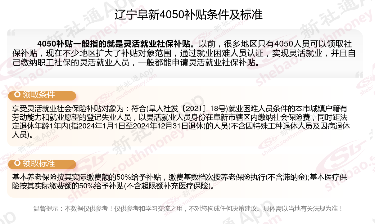 一、辽宁阜新4050社保补贴标准及条件2023-2024年